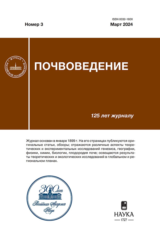 На примере почв Базового экспериментального комплекса Института оптики атмосферы СО РАН (г. Томск) изучено влияние весенних палов травы на свойства верхнего слоя гумусового горизонта миграционно-мицелярного чернозема (Haplic Chernozem). На участках, горевших два месяца, 1, 2, 3 и 11 лет назад, всего собрано 56 проб (5–14-кратная повторность). Выявлена высокая устойчивость контролируемых свойств почв (катионно-анионный состав водной вытяжки, содержание гранулометрических фракций и подвижных соединений широкого спектра элементов, общего C и N, величина рН, щелочность от HCO3–) к пирогенному воздействию от весенних палов травы. Информативными показателями, отражающими существенное пирогенное воздействие в течение последних 11 лет, являются содержание подвижных Ca, Mg и Sr, а также водорастворимого Mg2+ и щелочность от HCO3–. Их содержание выше в почвах молодых (0–3 года) палов относительно старого (11-летней) и негоревших участков. Среди изученных показателей низкие значения коэффициента вариации (преимущественно < 20% по всем обследованным выборкам) имели величина рН, содержание подвижных Ba и Sr и гранулометрических фракций с диаметром частиц 1–5, 5–10 и 10–50 мкм, высокие (>70%) – содержание водорастворимого аммония и подвижных Li и Zn.