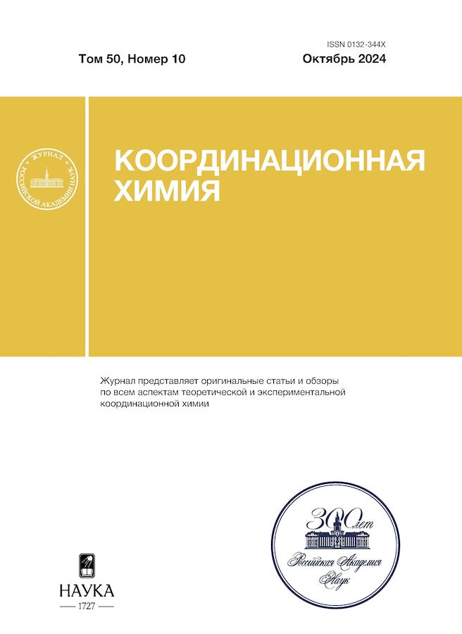 Синтезирована и исследована серия одноядерных комплексов [Ln(Py3PO)2(NO3)3] · 1.5Me2CO (Ln = Sm, Eu, Gd, Tb, Dy) и [Ln(Py3PO)(TTA)3] (Ln = Eu, Tb; TTA‒ = теноилтрифторацетонат-ион) на основе трис(2-пиридил)фосфиноксида (Py3PO). В полученных соединениях Py3PO выступает в качестве N,O-хелатного лиганда, что приводит к формированию координационных полиэдров N2O8 и NO7 атома Ln в комплексах [Ln(Py3PO)2(NO3)3] · 1.5Me2CO и [Ln(Py3PO)(TTA)3] соответственно. Комплексы ионов Sm3+, Eu3+, Tb3+ и Dy3+ проявляют лантаноид-центрированную фотолюминесценцию в твердой фазе при 300 K. Из спектра лиганд-центрированной фосфоресценции комплекса Gd(III) при 77 K определена энергия триплетного уровня T1 Py3PO, равная 21900 см‒1. Найдено, что среди комплексов с ионами NO3‒ Py3PO проявляет лучшую сенсибилизирующую способность по отношению к Tb3+, а в комплексах с ионами TTA‒ лигандное окружение наиболее эффективно сенсибилизирует люминесценцию иона Eu3+.
