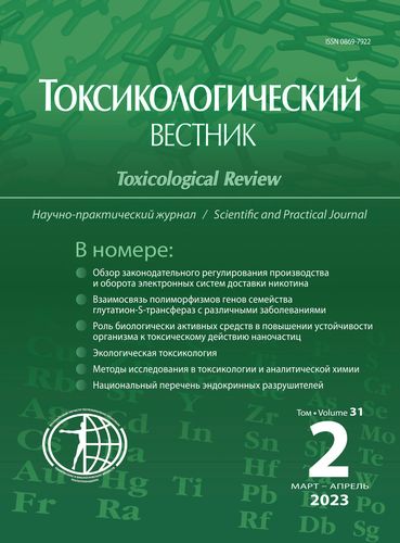 Введение. Необходимость повышения устойчивости организма человека к токсическому действию наночастиц (НЧ) обусловлена их широким распространением. Контакт человека с НЧ не ограничивается производственной деятельностью: он может произойти из-за загрязнения окружающей среды, либо ввиду их целенаправленного применения (например, в медицине и косметологии). Полное устранение экспозиции к НЧ и вредного действия на организм человека, обусловленного ею на данном этапе технологического развития, представляется невозможным, что делает проблему актуальной.