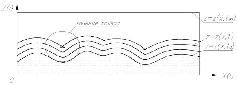 Изменение профиля поверхности движения транспортного средства, обусловленное снежным покровом, выветриванием, таянием, деформацией опорного основания, сглаживающей способностью колеса и прочими процессами