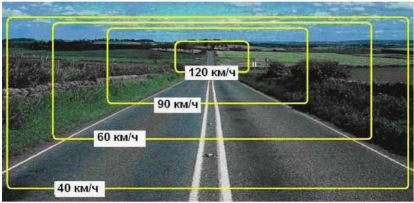 Рис. 4. Сужение поля зрения водителя в зависимости от скорости движения