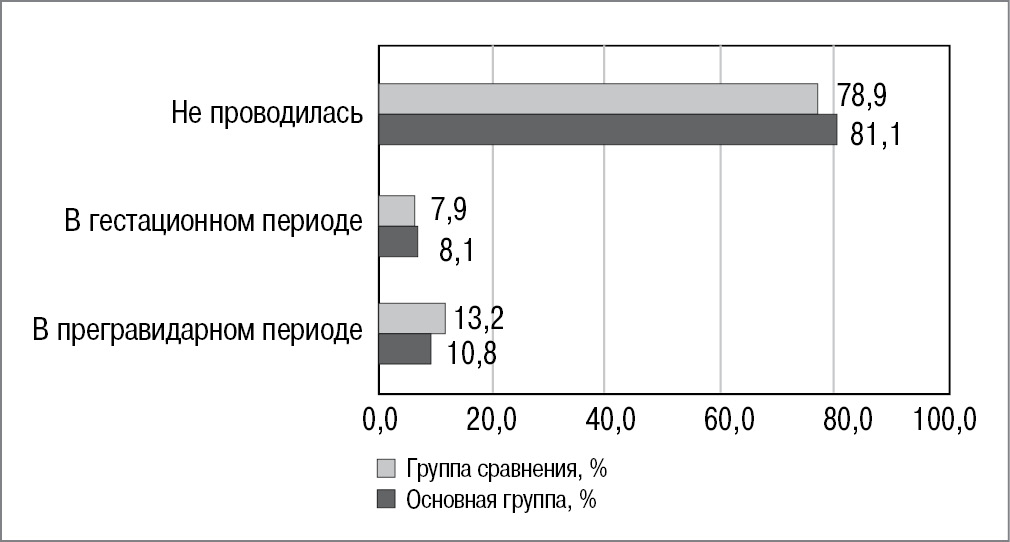 Группу сравнения образовали 38 беременных, которые с профилактический целью не использовали какие-либо лекарственные средства.