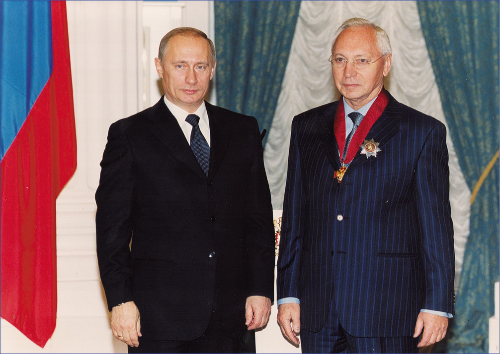 С президентом России В.В. Путиным после вручения ордена «За заслуги перед Отечеством» II степени, 2004 г.