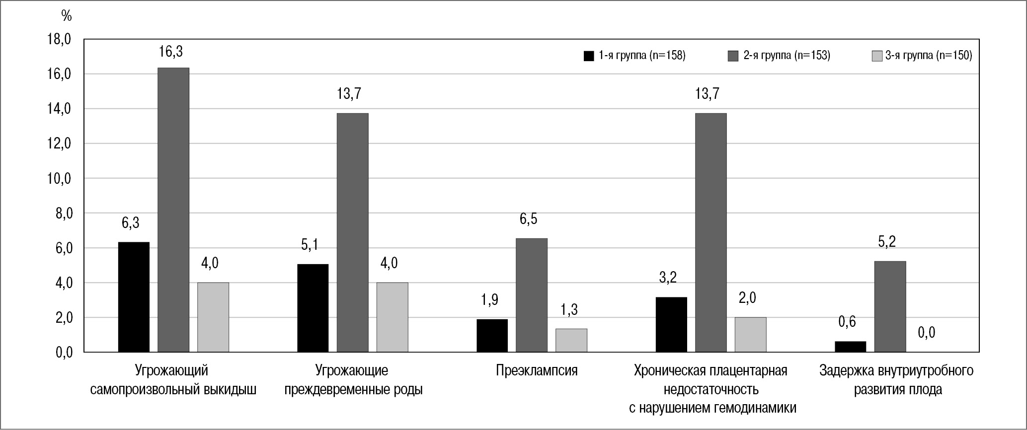 Fig. 1. Rate of pregnancy complications in patients of the studied groups.