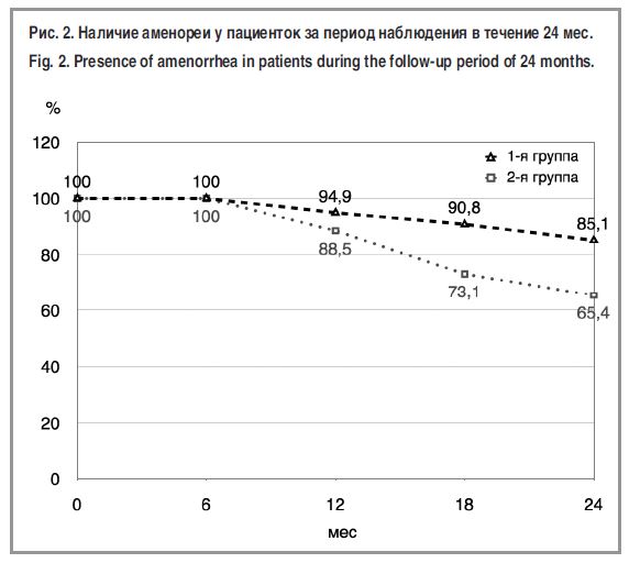 На рис. 2 изображена динамика аменореи, наблюдаемая у пациенток.