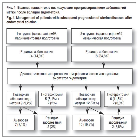 На рис. 4 отображена тактика ведения наблюдаемых пациенток с рецидивом заболеваний матки после аблации эндометрия.