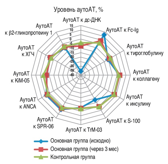 Рис. 1. Изменение показателей аутоАТ у пациенток основной группы.