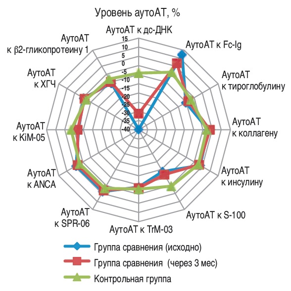 Рис. 2. Изменение показателей аутоАТ у пациенток группы сравнения.