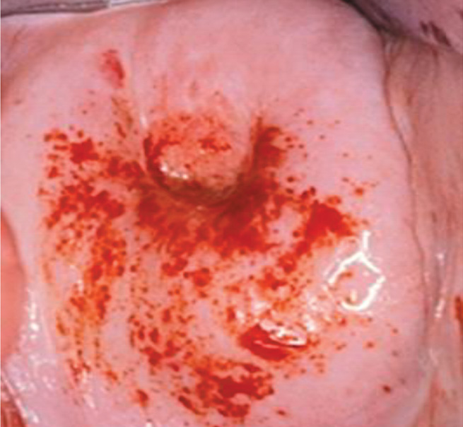 Вследствие обнажения субэпителиальных капилляров в участках наибольшего истончения часто возникают петехиальная сыпь и кровоизлияния. Стенки влагалища становятся гладкими и легко травмируются при половых контактах или осмотре в зеркалах | |