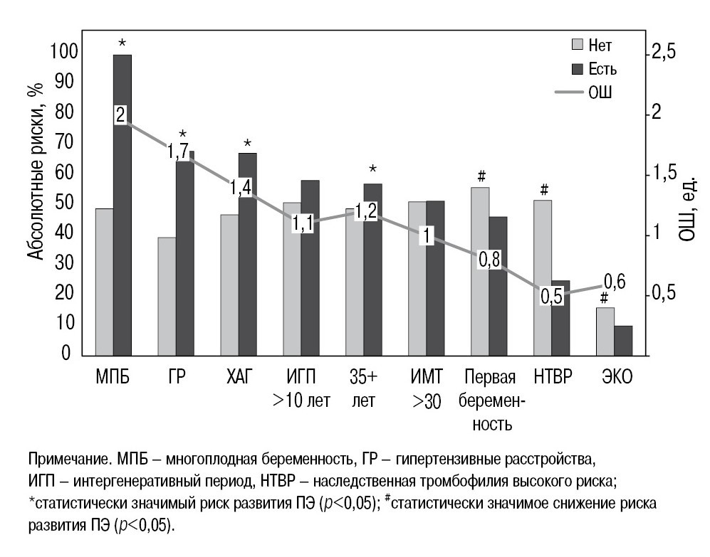 Рис. 1. Абсолютные риски для различных факторов развития ПЭ у беременных.