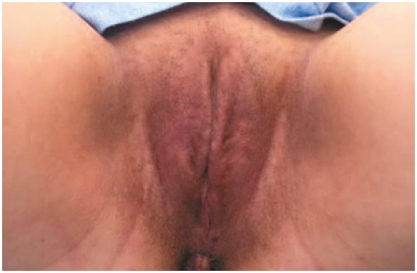 Рис. 4. Состояние наружных половых органов через 2 мес после хирургической коррекции.