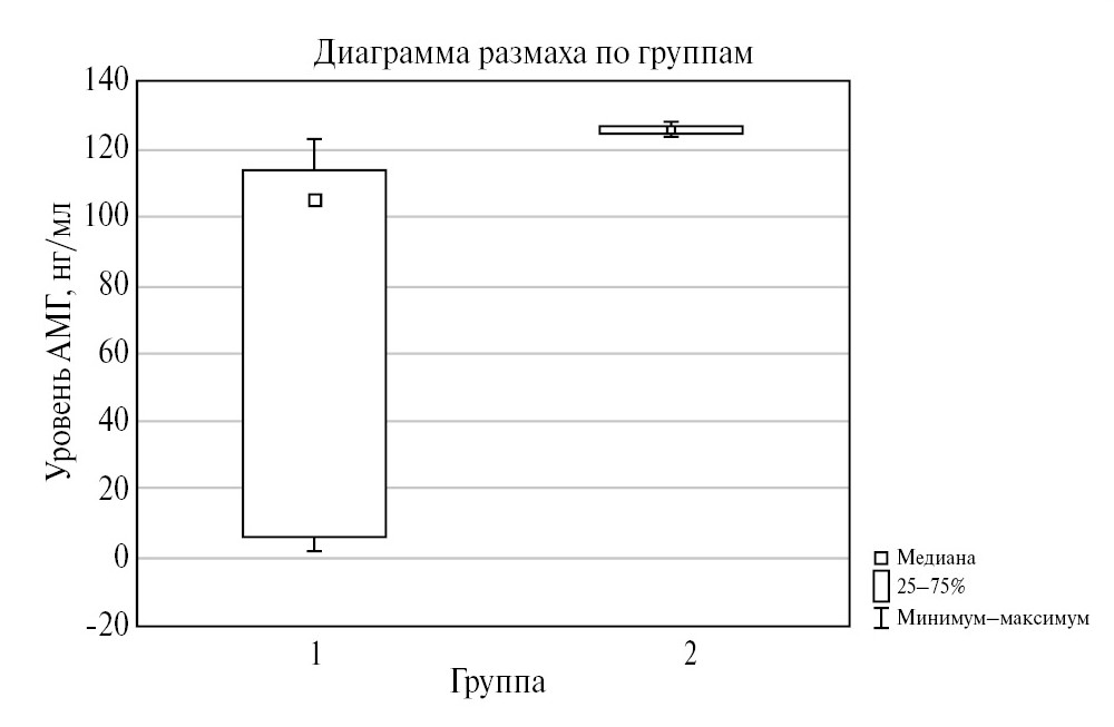 Fig. 1. Visualization of the differences between the anti-Müllerian hormone levels in the subjects of the main and comparison groups.