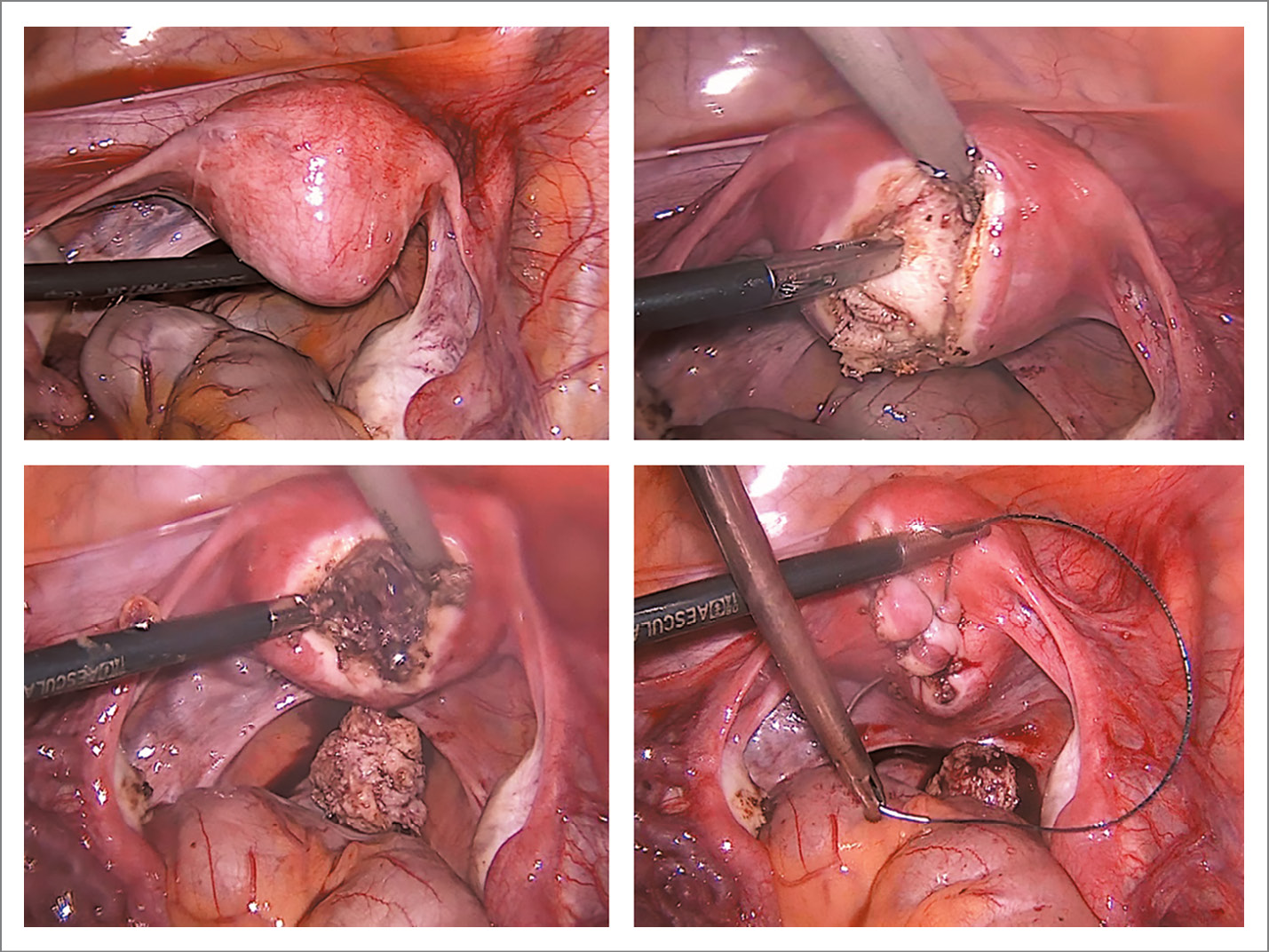 Fig. 2. Stages of adenomyomectomy surgery for cystic adenomyosis.