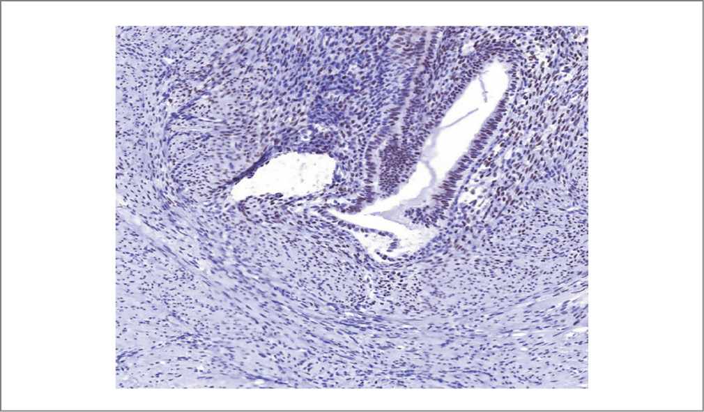 7. Fig. 6. ER expression in the endometrial glands. Immunohistochemistry. ×180.