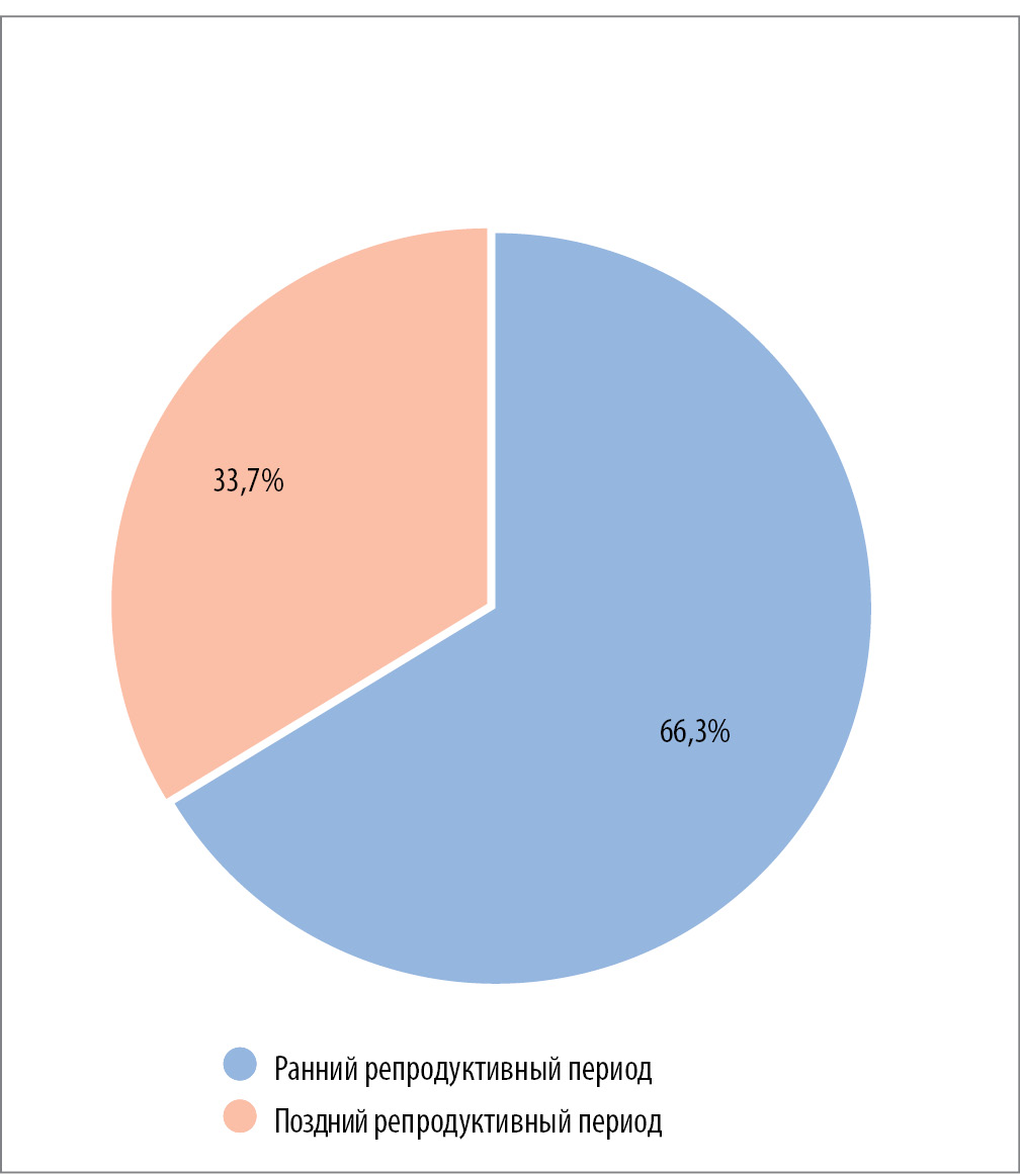 Как следует из данных рис. 7, число женщин раннего репродуктивного периода, имеющих ВПЧ, в 1,97 раза больше.