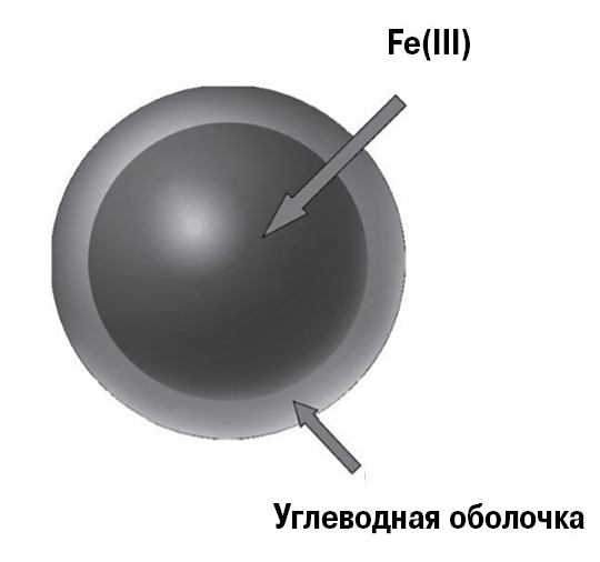 В общем виде комплексы парентерального препарата железа состоят из ядра, представленного оксидом/гидроксидом Fe(III), которое стабилизируется углеводной полимерной оболочкой (рис. 2).
