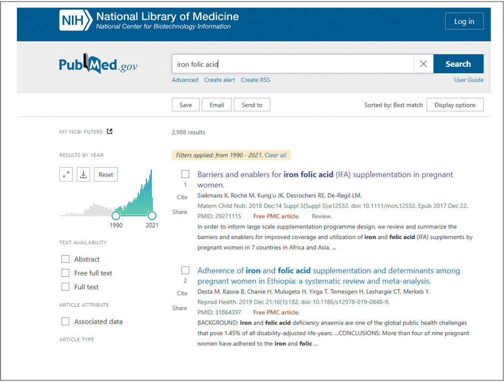 Fig. 4. Screenshot of the Pubmed page with the search term "iron folic acid" (IFA).