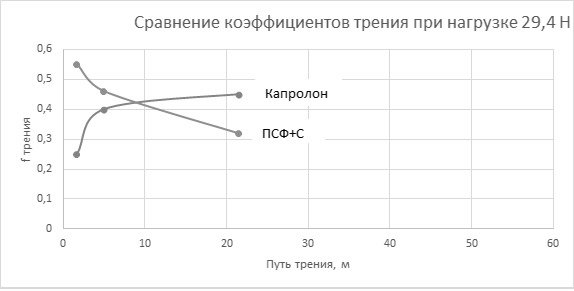 Рис. 10. Сравнение коэффициентов трения при нагрузке 29,4 Н.