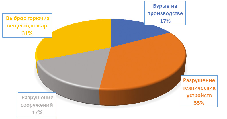 Рис. 1. Статистика аварий на объектах нефтегазовой отрасли за период 2017–2022 гг.