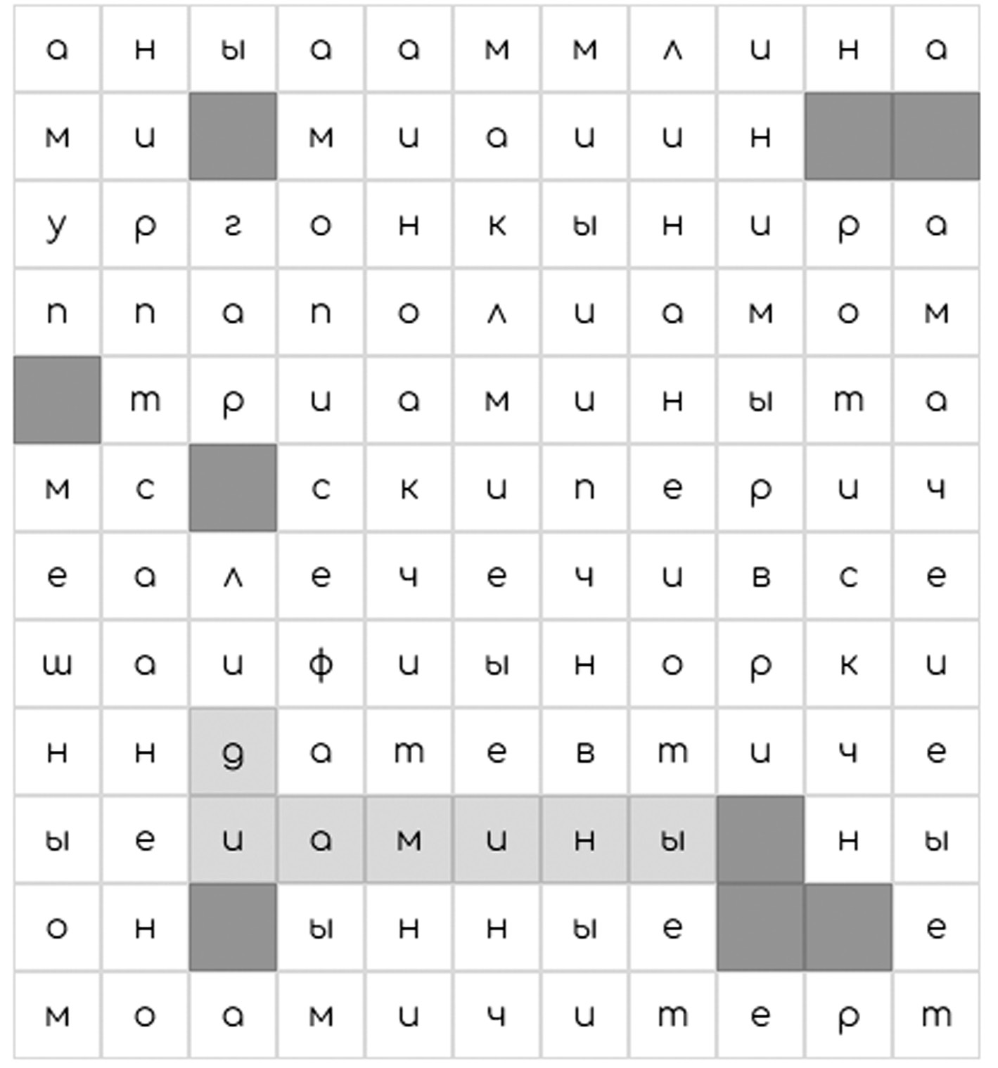 Рис. 2. Филворд «Аминосодержащие соединения»