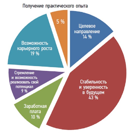 - Считает важным приобретение практического опыта работы пятая часть опрошенных.