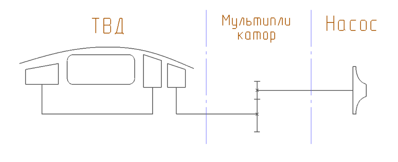 Рис. 1. Конструктивная схема совмещения насоса и турбовального двигателя